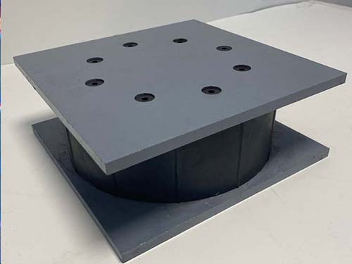 建筑隔震橡膠支座由多層橡膠和多層鋼板或其它材料交替重疊組合而成的隔震裝置,包括LNR橡膠支座()鉛芯橡膠支座(LRB)和高阻尼橡膠支座(HDR)。對應(yīng)不同建筑、橋梁的要求隔震橡膠支座可以有不同的疊層結(jié)構(gòu)、制造工藝和配方設(shè)計,以滿足所需要的垂直剛度、側(cè)向變形、阻尼、耐久性等性能要求.